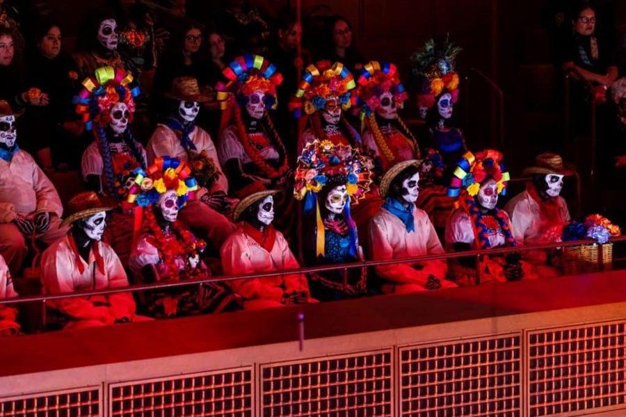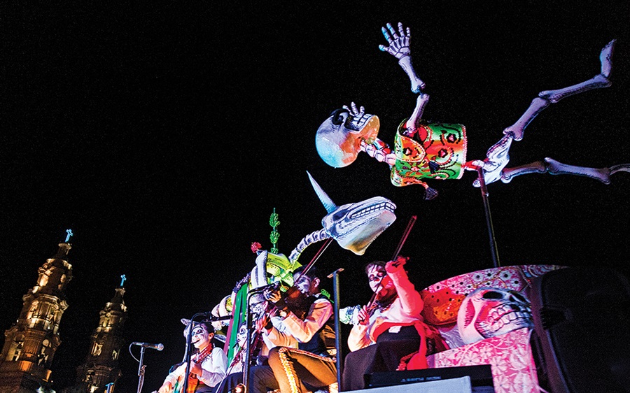 – Procesión de los esqueletos: Un desfile con marionetas gigantes, músicos y bailarines.