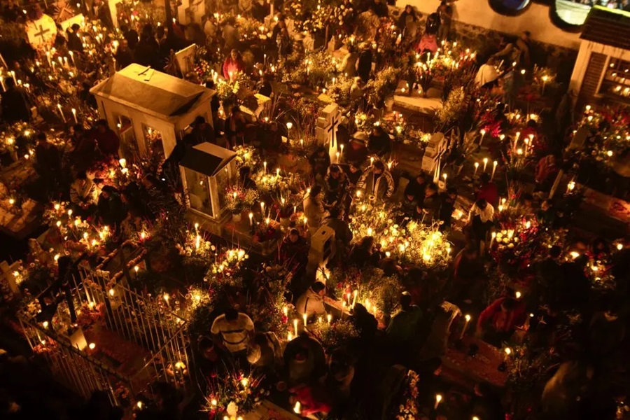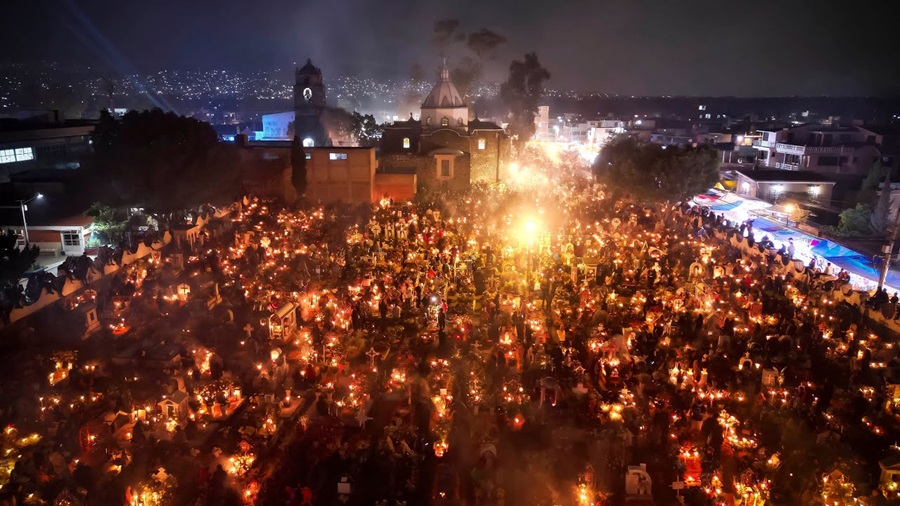 – La Alumbrada: Miles de velas iluminan el cementerio.