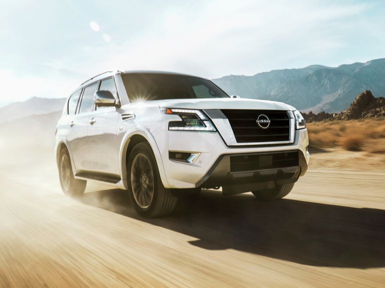 El viejo Armada de Nissan es de la vieja escuela y está orgulloso de ello. Es el SUV más grande del fabricante, con carrocería sobre bastidor, tres filas de asientos, un motor V-8 atmosférico y una capacidad máxima de remolque de 8.500 kg. La tracción a las cuatro ruedas es una opción en los cuatro modelos, y un eje trasero de deslizamiento limitado es estándar.