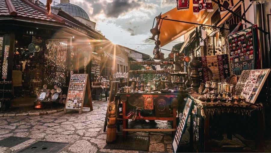 Mi primera parada fue Baščaršija, el corazón del casco antiguo. Al pasear por sus calles adoquinadas, me sentí transportado al siglo XV, cuando los otomanos construyeron este mercado. Las tiendas vendían de todo, desde alfombras hechas a mano hasta hermosos juegos de té de cobre, y el aroma del café bosnio recién preparado impregnaba el aire.
